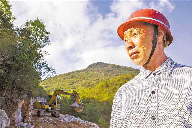 2016年5月10日,巫溪縣紅池壩鎮(zhèn)中崗村,林榮成看著正在施工的機(jī)耕道。