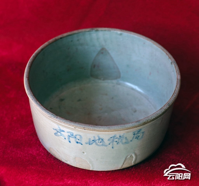 這只淺藍色的飯缽,口大底淺,質地粗糙,而且還有不少瑕疵。飯缽外面用藍色油性筆寫著“云陽地稅局”五個大字,顏色已逐漸裉去,從中也可看出這只飯缽經歷了多少歲月,成了地地道道的“老物件”。