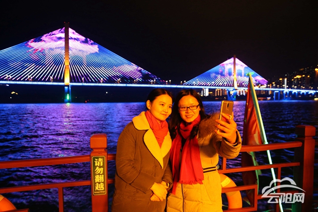 晚上7點,游船從港務站碼頭起航,逆江而上。市民們在一小時的航程中依次遠眺龍脊嶺文化長廊、雙井寨、兩江交匯、陽光沙灘、長江大橋、張飛廟等景點,欣賞兩岸的璀璨夜景。市民曾玲說,作為一名云陽人,只從高處看過云陽新城,在游船看云陽新城和長江大橋燈光秀還是第一次,搭乘游輪游覽云陽夜景將成為了解云陽必不可少的方式。