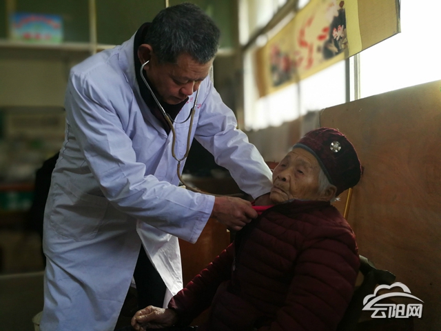 當(dāng)天,天氣晴朗,陽光充沛,老人們?nèi)急粩v扶著坐在院門口曬太陽,鄉(xiāng)村醫(yī)生邵青元正挨個(gè)地查看他們的健康情況,并不時(shí)交談著。73歲的老人譚楊贊向記者連連夸贊:“小邵對(duì)我們很好,住在這兒,我們心頭就像這太陽天一樣,暖烘烘的!”