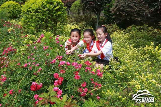 日前,中山外國語學校的薔薇花盛開,吸引了全校師生前來觀賞。(王彬彬 攝)