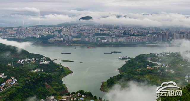 5月6日,立夏時節,云陽縣城遭遇暴雨襲擊,但雨中的城市景象別有韻味,景美如畫。江上騰起的薄霧與環繞在山間的云霧相呼應,讓云陽縣城籠罩在雨霧之中,若隱若現,恍如仙境。(丁齊 程建銘 攝)