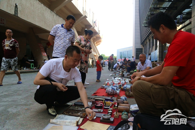 剛過早上八點,縣文化藝術品市場已經熙熙攘攘,很是熱鬧。一位經營者告訴記者,經常到市場的老主顧很多,因為都很喜愛古玩,所以早已成為朋友。建于2016年的云陽文化藝術品綜合交易市場,將縣體育場周邊28個門市連片裝飾,采取個體業主或“公司+商戶”模式,吸引了38家商戶入駐。經過一年多來的不斷完善,目前已成規模,是渝東北目前規模最大的集古玩、字畫、奇石、瓷器、木雕、花卉等為一體的文化藝術收藏品交易市場。每到周末,都會吸引很多云陽周邊的古玩愛好者前來交流、交易。展品中,蘊含著云陽濃厚的巴文化、三國文化、鹽文化和移民文化等地域文化特色的藏品讓古玩愛好者們愛不釋手。