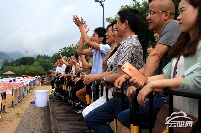 云陽網訊(實習生 鄧庭庭 鄭紅均)5月18日,在2018年全國沙灘排球巡回賽云陽站第二天小組賽上,現場觀眾熱情高漲,吶喊助威。