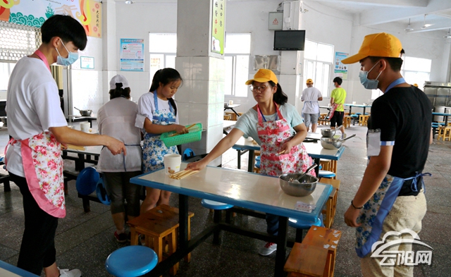 中考第一天,50余名志愿者們早上7點半前就趕到鳳鳴中學考點的食堂,為考生們擺放好餐具和食物,隨后,志愿者們分成10個小組為中考站崗,為廣大考生做向導服務,提供各考點、考場位置及考生常見問題解答等。當所有考生進入考場后,志愿者們對道路周邊進行巡邏,協助交警維護現場秩序,保持道路暢通。他們叮囑來往的車輛要慢行,不要鳴笛,給需要幫助的學生和家長引路,并給在考點外等候的家長發放折疊扇,防暑降溫,為學子和家長們創造一個舒適寧靜的考場外氛圍。此外,志愿者們還認真地協助老師維護考場秩序并做好校園保潔工作。