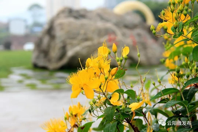 月光草坪內(nèi)處處可見的金絲桃,金黃色的花朵為公園增添一抹生機。