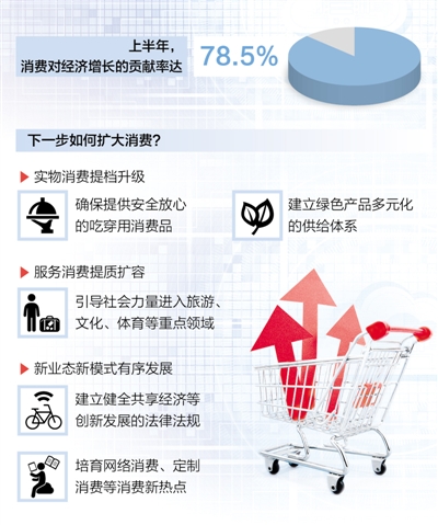 上半年,我國社會消費品零售總額達18萬億元,同比增長9.4%,消費對經濟增長的貢獻率達78.5%。下半年,面對新挑戰,消費運行走勢將如何?作為經濟增長的“壓艙石”,進一步擴大消費的潛力在哪里?國家發展改革委2日召開專題新聞發布會,介紹相關情況。
