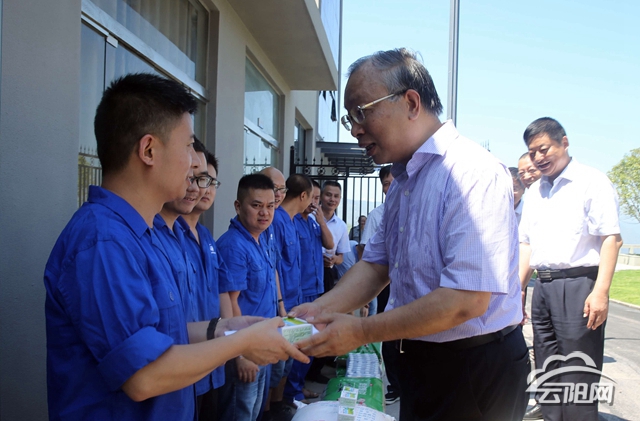 云陽網訊(記者 鄧磊)8月8日,縣委書記張學鋒率隊到南溪至縣城快速通道工程(黃石段)施工現場、曙光立交施工現場、肖家灣水廠等地,看望慰問高溫天氣奮戰在一線的工人,送去綠豆、藿香正氣液等防暑降溫物品,給他們送去夏日的清涼和黨和政府的關懷。