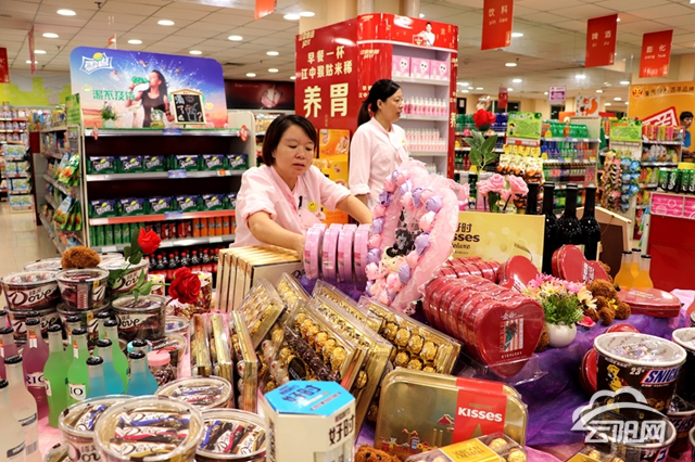 七夕情人節(jié),是情侶表達愛意的日子,玫瑰花與巧克力成了告白標配,各大超市推出“情人節(jié)促銷”巧克力,主要以盒裝為主,酒心巧克力、白巧克力、黑巧克力等在展臺上擺放成各種造型,甚是吸引人。這些巧克力價格在幾十元到幾百元不等。“一般買大盒的多一些,相比之下劃算些,買巧克力大多是年輕人,這幾天銷量很不錯。”銷售員王女士告訴記者,現(xiàn)在,巧克力已成了七夕節(jié)的時尚品,有不少顧客開始選購巧克力了,100元左右的巧克力銷量最好,而超過100元的巧克力,超市將免費提供精美包裝。