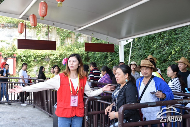 志愿者身著紅色靚麗的志愿者馬甲分別在景區(qū)游客服務(wù)中心和北門、南門的主要出入口,以及天河廣場發(fā)往云端廊橋、龍缸南門、大安洞的觀光車驛站點(diǎn)等主要游客集散點(diǎn)開展引導(dǎo)和咨詢、勸導(dǎo)不文明行為、維護(hù)游人乘車秩序、提供便民服務(wù)等活動(dòng),既弘揚(yáng)了“奉獻(xiàn)、友愛、互助、進(jìn)步”的志愿服務(wù)精神,也扮靚了景區(qū)風(fēng)景。