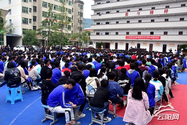 云陽網訊(記者 段斯斯)為增強學生的安全、法制意識,10月18日,云陽人和初中舉行了掃黑除惡專項斗爭法制宣講會,全校師生800余人參加。