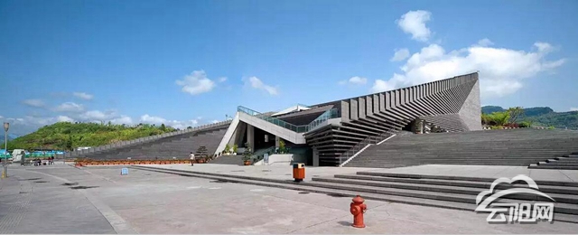 云陽市民文化活動中心建成時間為2009年,項目面積73畝,由建筑、廣場、小橋組成,屹立于長江岸邊,與江岸堤壩融成一體,仿佛如古老的臺階,延伸至江水之中。群眾可游戲于階梯之上,或是閑適觀望,或是靜享江風濤聲,水天一色,盡覽無遺。