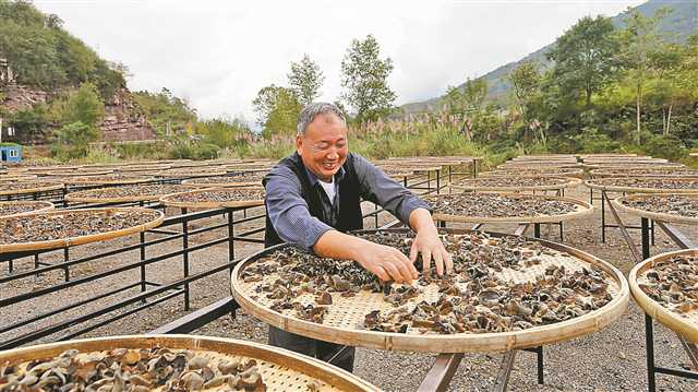 近日,泥溪鎮黑木耳生產基地,村民正在晾曬黑木耳,豐收的喜悅寫在臉上。李充 攝