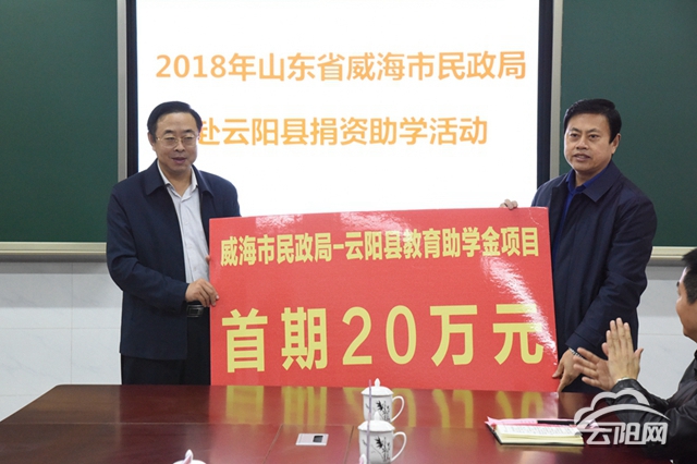 云陽網(wǎng)訊(記者 王彬彬)11月14日,山東省威海市民政局黨委書記、局長欒波率隊到南溪中學(xué)開展捐資助學(xué)活動,為學(xué)校捐贈20萬元。
