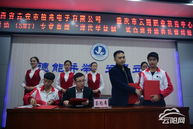 從2016年起,市教委分批確定60個市級中職現代學徒制試點,今年,云陽職教中心與該公司結緣,經過一段時間的磨合,調動了師徒之間教與學的積極性,縮短學徒從知識向技能轉化的過程,將進一步提升學生崗位技能,提高學生對口就業率和就業質量。