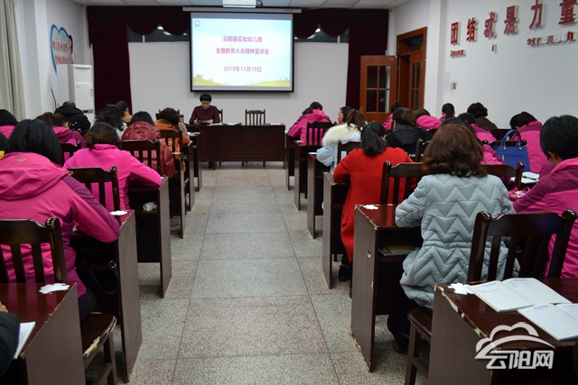 云陽網(wǎng)訊(實習生 鄧庭庭)11月19日,實驗幼兒園在三樓會議室召開了學習貫徹全國教育大會精神宣講會,全體教職工參加了宣講會。
