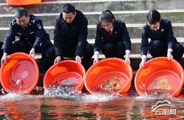 這是當地連續12年開展的增殖放流活動,范圍覆蓋全縣“一江四河”主、支流魚類巡游區。今年集中投放82萬尾入江,首次引入法律監督也算一大觀念創新。云陽縣人民檢察院“南溪檢察室”的2名干警對整個放流過程進行現場監督,5名縣檢察院的員額檢察官參與了“青年志愿者長江公益放生儀式”,從中了解生態保護的積極意義和修復性司法的基本路徑,為日后更好地開展環境公益訴訟積累實踐經驗和調查能力。