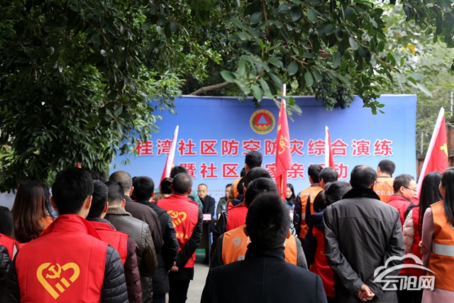 云陽網(wǎng)訊(實習(xí)生 鄭紅均)11月27日,雙江街道桂灣社區(qū)開展防空、防災(zāi)綜合演練暨城市基層黨建社區(qū)一家親活動,駐區(qū)單位人員和居民共計100余名參加。