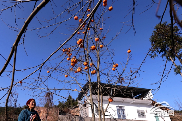 冬日暖陽(yáng),大陽(yáng)鎮(zhèn)大樹(shù)村一農(nóng)家房前院后,高大蒼勁的柿子樹(shù)上掛滿了果子,遠(yuǎn)遠(yuǎn)望去,猶如一個(gè)個(gè)大紅燈籠,在藍(lán)天白云映襯下,宛如一副美麗畫(huà)卷。