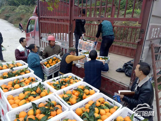 云陽網訊(通訊員 蒲自英 張媛媛)11月29日,渠馬鎮天嶺村果農們將剛采摘的紐荷爾裝箱上車運往江西,喜悅寫在臉上。