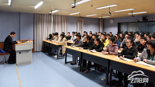 縣人民檢察院黨組書記、云陽中學法制副校長張超以“讓法治信仰澆灌你神采飛揚的青春夢”為主題,從 “醇厚、美麗、博大、進取”的云中精神切入,結合法律知識,闡述了構筑法治信仰的重要性,并以案說法,對法律概述、法制意識、預防暴力犯罪以及警惕網絡風險四個方面進行了鮮活生動的講解。他希望同學們通過學習法律知識,構筑法治信仰,樹立健康的人格,練就優秀的學品,自覺抵制不良行為和不良風氣,成為一個具備擔當精神的好孩子、好學生、好公民。