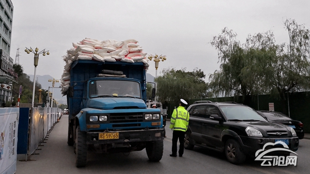 云陽網訊(記者 李充)12月5日,在濱江大道一路段上,縣交巡警大隊的交巡警正在對一輛貨車的超載違法行為進行處置。