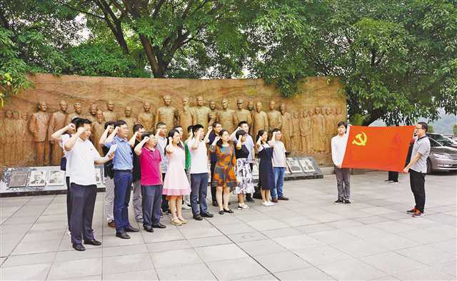 渝中區委組織部干部職工在紅巖村重溫入黨誓詞。(渝中區委組織部供圖)