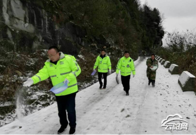 云陽網訊(記者 李充 通訊員 伍遠洋)1月3日,在大陽鎮慶霞村一條山鄉公路上,該鎮組織的安監辦人員和村社干部及群眾,采用撒鹽等技術,清理路面積雪,確保道路交通安全。