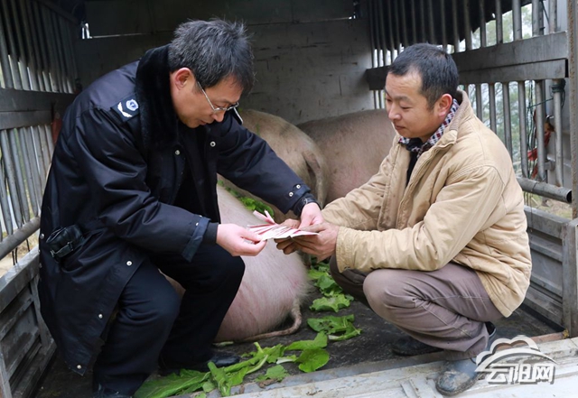 在賣豬現(xiàn)場,該鎮(zhèn)畜牧獸醫(yī)站站長龔文祥一邊核對糧食豬的信息,一邊核算賣出的糧食豬總價(jià)格。他告訴記者:“我們這里的農(nóng)戶飼養(yǎng)的糧食豬,質(zhì)量絕對沒問題。我們從農(nóng)戶飼養(yǎng)豬崽開始,就為這些豬貼上標(biāo)簽,編寫序號,以便辨別,并安排技術(shù)人員每月對農(nóng)戶家飼養(yǎng)的豬進(jìn)行例行檢查和指導(dǎo),檢查養(yǎng)殖戶是否采用熟食飼養(yǎng),村防疫員是否為豬驅(qū)蟲、打防疫針等,從豬崽到成品豬整個(gè)工程,我們都有專人監(jiān)管,以保糧食豬健康成長。”龔文祥核算完價(jià)格后,立即給賣豬農(nóng)戶以現(xiàn)金方式支付給了貧困戶。