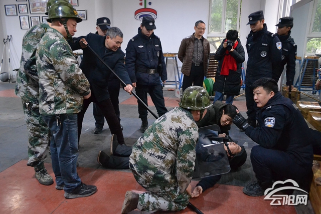 培訓(xùn)中,江口特警四中隊(duì)的警官以現(xiàn)場(chǎng)教學(xué)、親身體驗(yàn)、交流互動(dòng)等方式,全面細(xì)致地講解了防爆鋼叉、防爆盾牌等反恐防爆器械的主要使用方法及注意事項(xiàng),并強(qiáng)調(diào)面對(duì)歹徒,安保人員要因地制宜、就地取材與恐怖分子作斗爭(zhēng),不能等,不能逃避,要勇敢地斗爭(zhēng)。