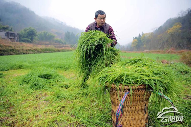 賀茂勝把牧草塞滿背簍。劉興敏攝(影像中國)