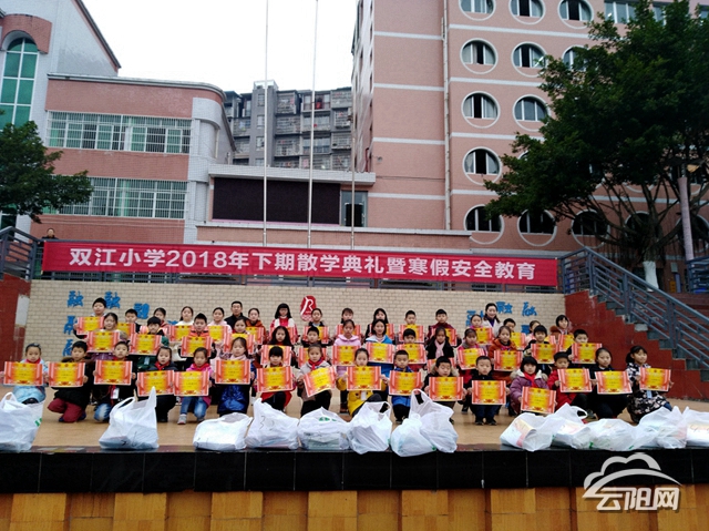 云陽網訊(實習生 鄧庭庭)1月24日,云陽縣雙江小學2018年秋季散學典禮暨寒假安全教育大會在學校操場舉行。