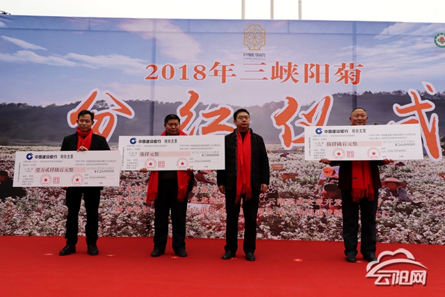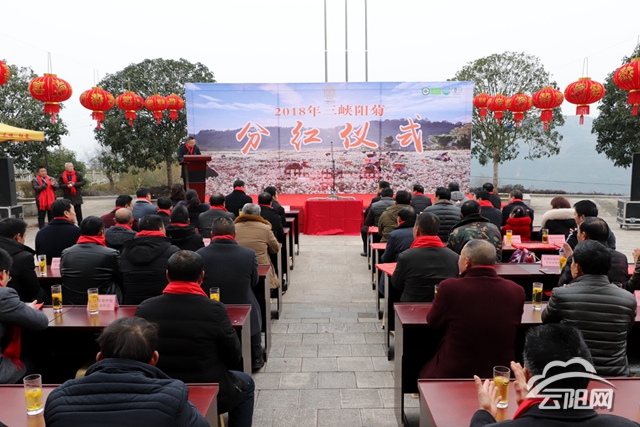 儀式上,對2018年三峽陽菊種植情況進(jìn)行了總結(jié),對表現(xiàn)突出的優(yōu)秀村集體經(jīng)濟(jì)組織和種植戶進(jìn)行表彰和分紅。分紅涉及16個鄉(xiāng)鎮(zhèn)(街道)28個村(社區(qū)),分紅金額共計75萬余元。