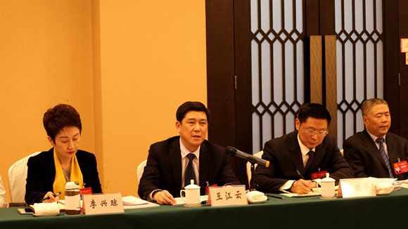 市人大代表、云陽縣人力資源和社會保障局局長王江云在代表團討論中提出自己的建議。 通訊員 李充 攝