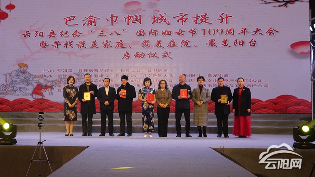云陽網訊(記者 李充 實習生 洪琳)煙花三月,唯美爛漫。3月7日,云陽紀念“三八”國際婦女節109周年大會暨尋找最美家庭、最美庭院、最美陽臺啟動儀式在縣體育館隆重舉行,來自各行業領域600多名婦女代表和干部群眾齊聚一堂,載歌載舞,共慶節日。