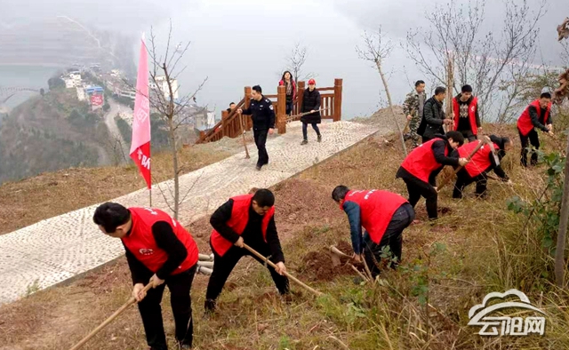 首先是開展植樹活動。學校領導率領全校教職工參加鄉黨委組織的全民義務植樹,大家齊心協力,有的挖坑,有的扶畝,共植了100多棵樹。