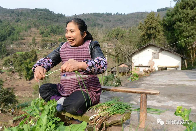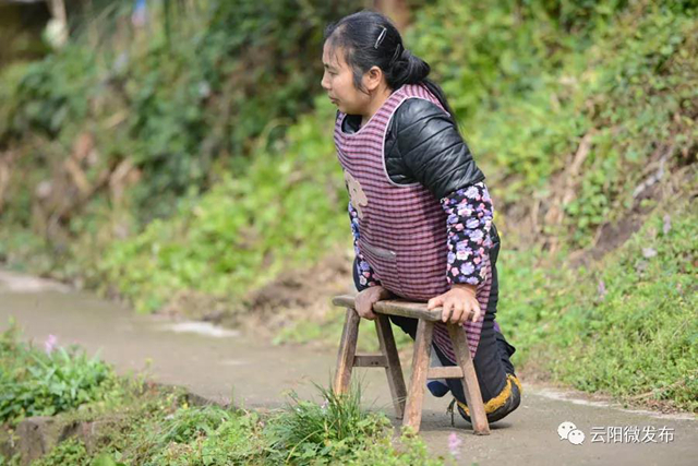 云陽紅獅雙腿殘疾農婦靠板凳走路,栽秧撻谷挖地種菜樣樣都干