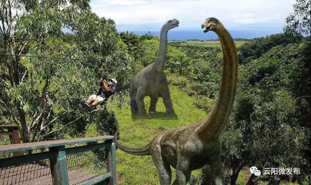 侏羅紀(jì)荒島求生運(yùn)動(dòng)公園和侏羅紀(jì)探險(xiǎn)谷通過恢復(fù)侏羅紀(jì)植被、植入仿真恐龍、場(chǎng)景景觀營(yíng)造穿越的沉浸體驗(yàn)。