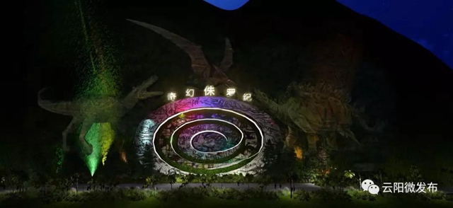 入口門區(qū)標志景觀,呈現(xiàn)三段恐龍時期的進化演變,以巖畫、綠植模紋與浮雕綜合藝術(shù)手法,表現(xiàn)各個時期獨特場景。