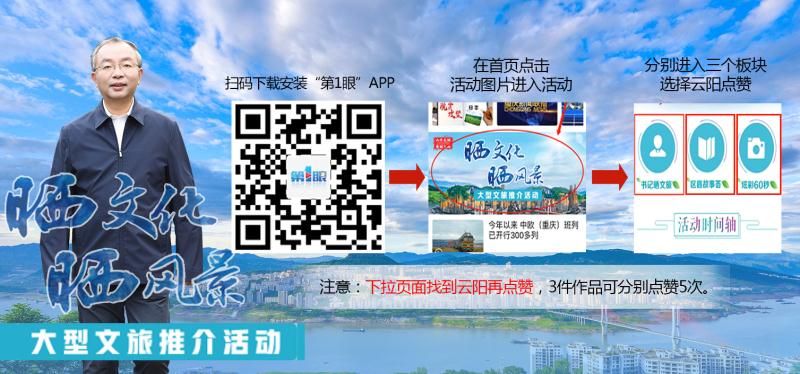 友情提示:云陽參加的“曬文化.曬風景”大型文旅推介活動在”第1眼“客戶端有“書記曬文旅””區縣故事薈“”炫彩60秒“三個板塊,每天每個手機號碼可以各點5次贊!點贊投票將截止到4月4日,僅剩四天時間!