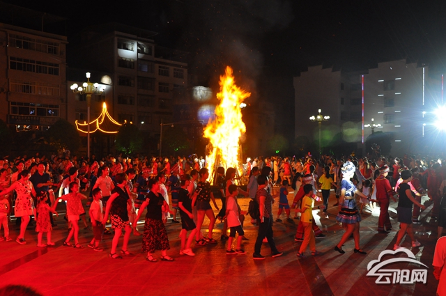 夜晚,土家兒女身披土家服飾,頭裹白布帕,在熊熊燃燒的篝火旁,踩著牛皮大鼓的鼓點,男女相攜, 翩躚進退,輕盈擺手,放聲歌唱……