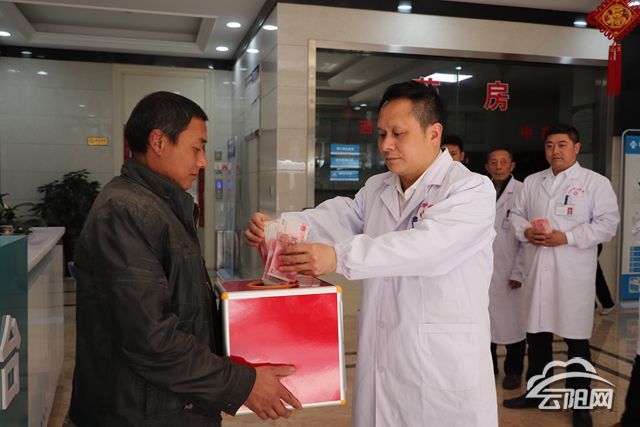 4月6日,記者來(lái)到云陽(yáng)縣華山醫(yī)院看到,醫(yī)院大廳正在舉行一場(chǎng)特殊的募捐活動(dòng),該院發(fā)動(dòng)醫(yī)護(hù)人員捐款,救助因左股骨頭缺血性壞死入院的71歲老人冉洪興。