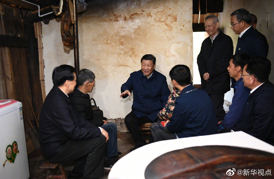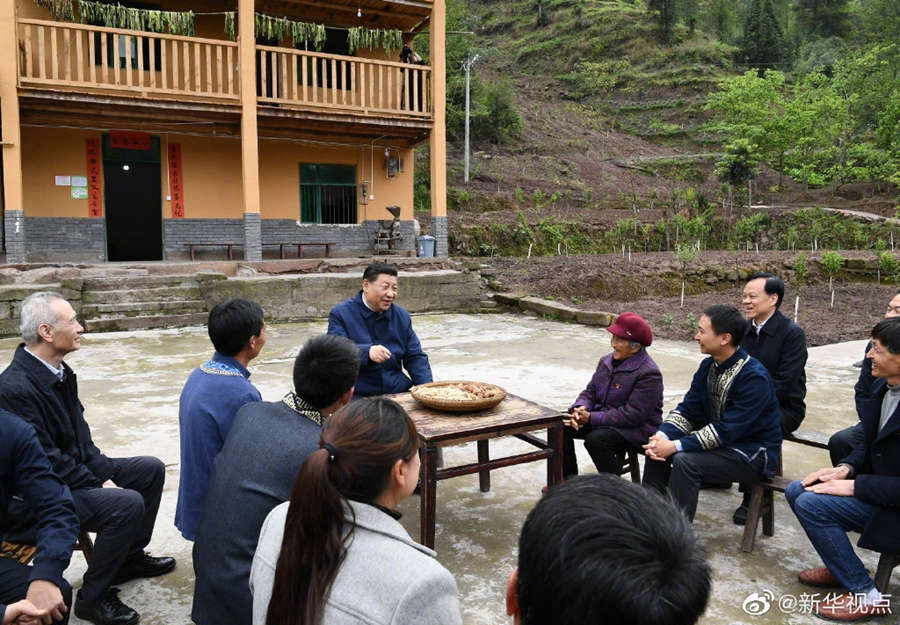15日下午,正在重慶市調研的習近平總書記來到石柱土家族自治縣中益鄉華溪村村民、老黨員馬培清家中,同村民代表、扶貧干部圍坐院中,共話脫貧攻堅。習近平說:“小康不小康,關鍵看老鄉,關鍵看脫貧攻堅工作做得怎么樣。我今天乘飛機、坐火車、坐汽車,先后用了三種交通工具,專程來這里看望大家。看到大家不愁吃、不愁穿,教育、醫療、住房安全越來越有保障,心里感到很托底。”習近平囑咐大家,幸福是奮斗出來的,脫貧致富不能等靠要,既然黨的政策好,就要努力向前跑。(文字:張曉松 攝影:鞠鵬、謝環馳、丁海濤)?