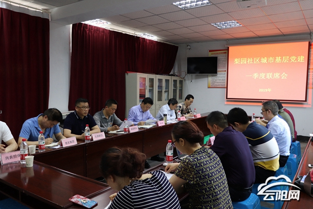 會(huì)議通報(bào)了2018年各單位履行共駐共建責(zé)任情況、各單位在職黨員考核評(píng)分情況及第四季度項(xiàng)目認(rèn)領(lǐng)事項(xiàng)落實(shí)情況,討論并認(rèn)領(lǐng)2019年一季度城市基層黨建項(xiàng)目清單、梨園社區(qū)2019年4月“社區(qū)一家親”活動(dòng)。