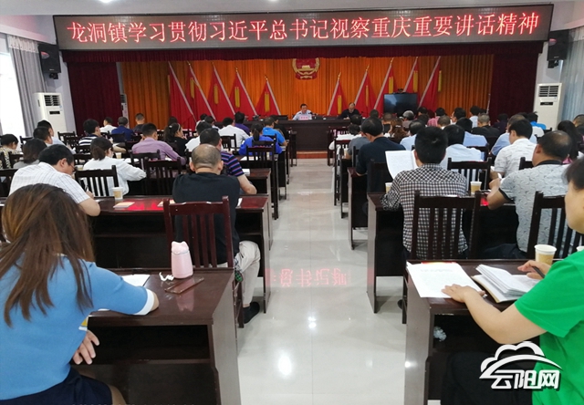 云陽網訊(實習生 鄭紅均 通訊員 王才均)4月26日,龍洞鎮組織機關全體干部職工、村(社區)四職干部、本土人才、貧困村駐村工作隊和鎮屬單位負責人開展學習貫徹習近平總書記視察重慶重要講話精神。