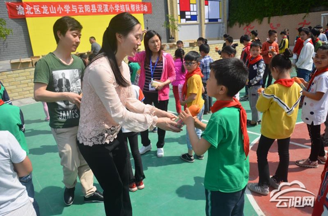 4月25日至26日,渝北區龍山小學校師生和家長代表乘車趕往云陽縣深度貧困鄉鎮泥溪小學開展主題為“龍山泥溪手拉手,城鄉互動逐夢行”精神幫扶活動,兩天時間里,分別開展了親子家庭幫扶結對、捐贈獻愛心、幫扶結對座談會、送課下鄉等活動,拉開了渝北區龍山小學校結對幫扶云陽縣泥溪小學少年宮的序幕,扶貧協作花繁果碩!