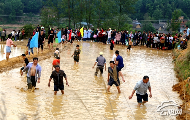 隨后記者來到田間,看見人機插秧比賽與摸魚活動同時火熱進行,游客們集聚在水稻田旁,一睹人機插秧大賽和摸魚活動的風采。在火熱的助威吶喊聲中,插秧能手們甩開膀子你追我趕,一簇簇鮮綠的秧苗在隊員們的巧手下整齊地排列在稻田中,隨風搖曳的秧苗、隊員們的激情體現(xiàn)了傳統(tǒng)農(nóng)耕勞作之美。不一會,插好的秧苗就排到了十米開外。摸魚活動也是一派熱鬧場景,參加摸魚活動的選手們,無論是大人、還是孩子,大家爭先恐后脫掉鞋襪,沖向田間,有的提著小桶,有的拿著網(wǎng)兜,有的干脆就徒手……使出了洪荒之力來抓魚,現(xiàn)場畫面甚為壯觀。