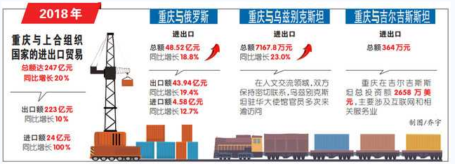 記者從市政府外辦了解到,去年以來(lái),重慶與上合組織高層互訪密切,雙方合作不斷加深。在經(jīng)貿(mào)方面,去年重慶與上合組織國(guó)家的進(jìn)出口貿(mào)易總額達(dá)到約247億元、同比增長(zhǎng)20%,其中出口額223億元、同比增長(zhǎng)10%,進(jìn)口額24億元、同比增長(zhǎng)100%。