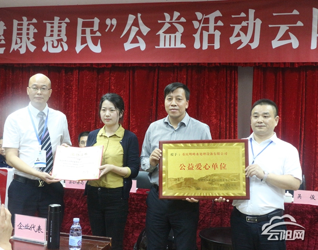 “善舉創造和諧,愛心傳承美德,捐助是真誠的,關愛是無價的。我希望此次捐贈能真正幫助到云陽老百姓。”重慶明峰水處理設備有限公司總經理吉挺說。