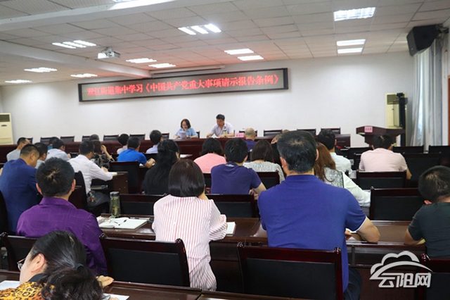 云陽網訊(記者 劉雪梅 通訊員 吳勛勛)近日,雙江街道組織全街機關干部職工集中學習貫徹《中國共產黨重大事項請示報告條例》內容和精神。